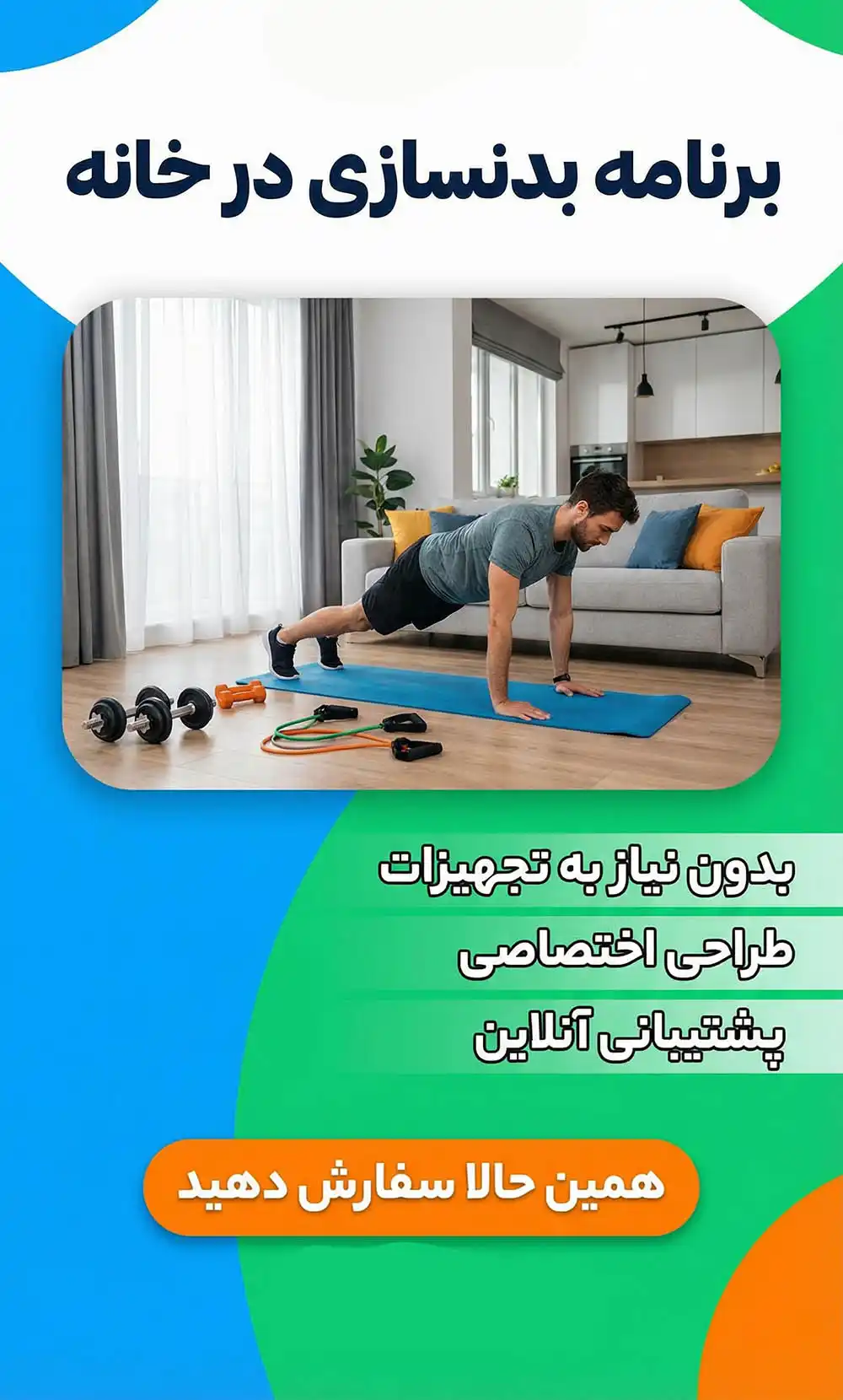 نکته مهم: بین دو جلسه حداقل ۴۸ ساعت (۲ روز) فاصله بگذارید. مثلاً جلسه اول را شنبه و جلسه دوم را سه شنبه انجام دهید. هر ۲ هفته وزنهها یا تکرارها را افزایش دهید تا پیشرفت ادامه داشته باشد.